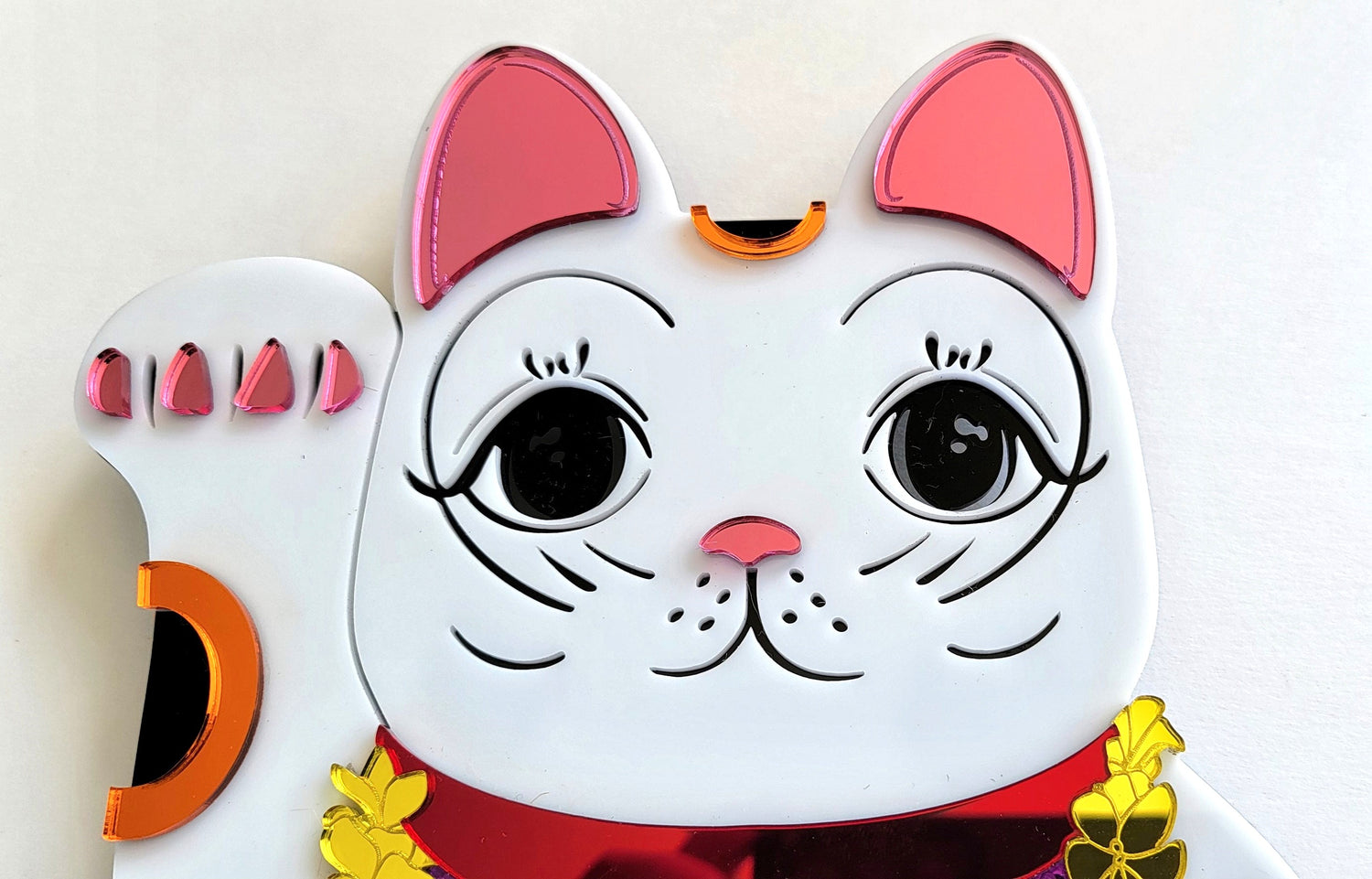 My dad and I have been collaborating on making clocks. I do the design and he does the cutting and building. This maneki-neko is our first project together. More designs to come. Please check them out at HaleKoo.com.